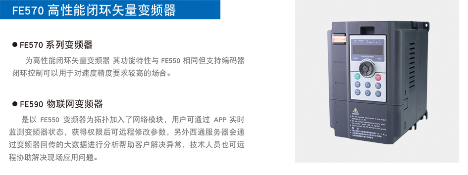 為高性能閉環(huán)矢量變頻器 其功能特性與FE550相同但支持編碼器閉環(huán)控制可以用于對(duì)速度精度要求較高的場(chǎng)合。